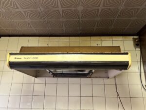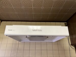 アパートの管理会社様より「レンジフードが動かなくなったので、確認してほしい」とのご連絡をいただきました。現場に伺うと、設置されていたのは約20年前に製造されたナショナル製のレンジフードでした。